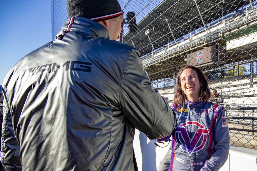 • #19 Mercedes-AMG GT3 of Erin Vogel, Thomas Merrill, and Michael Cooper, DXDT Racing, GTWCA Pro-Am, IGTC GT3 Pro-Am, SRO, Indianapolis Motor Speedway, Indianapolis, IN, USA, October 2021 | Sarah Weeks/SRO