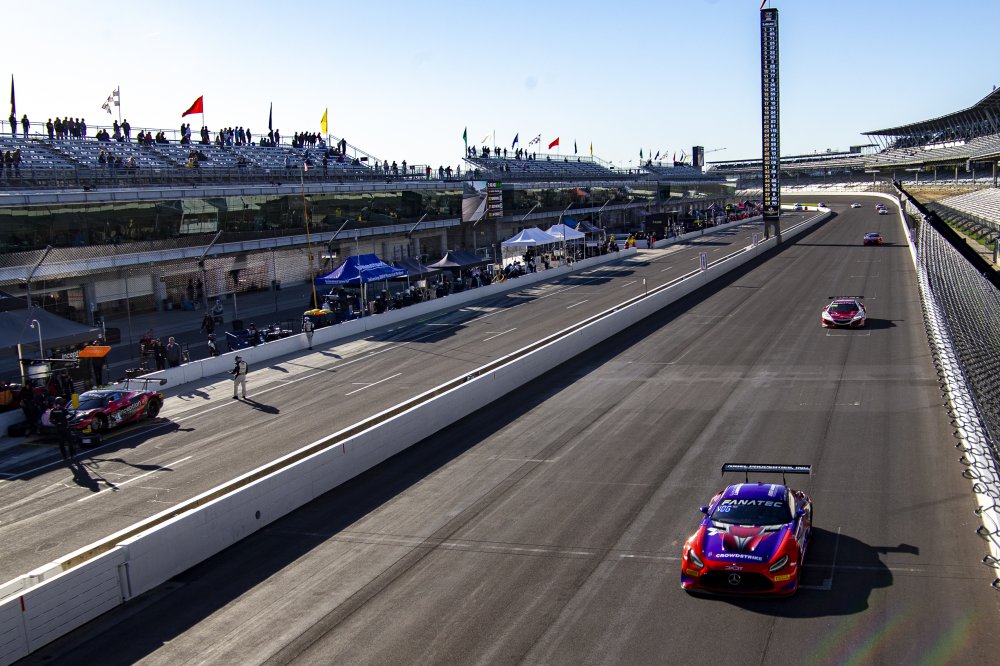 • #19 Mercedes-AMG GT3 of Erin Vogel, Thomas Merrill, and Michael Cooper, DXDT Racing, GTWCA Pro-Am, IGTC GT3 Pro-Am, SRO, Indianapolis Motor Speedway, Indianapolis, IN, USA, October 2021 | Brian Cleary/SRO