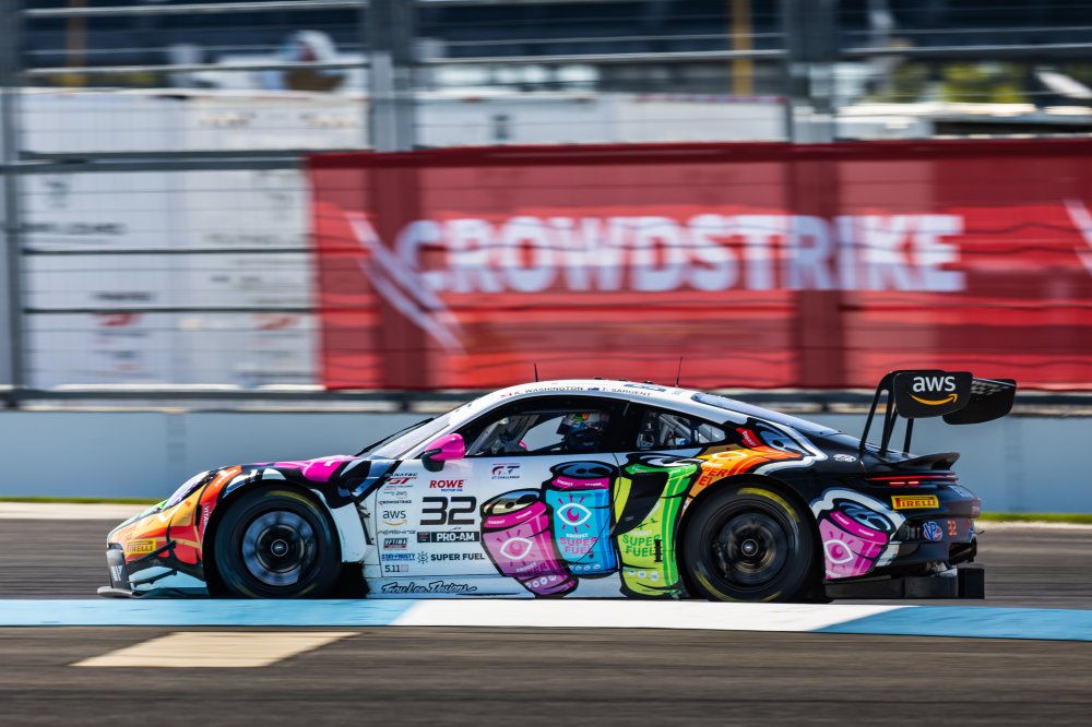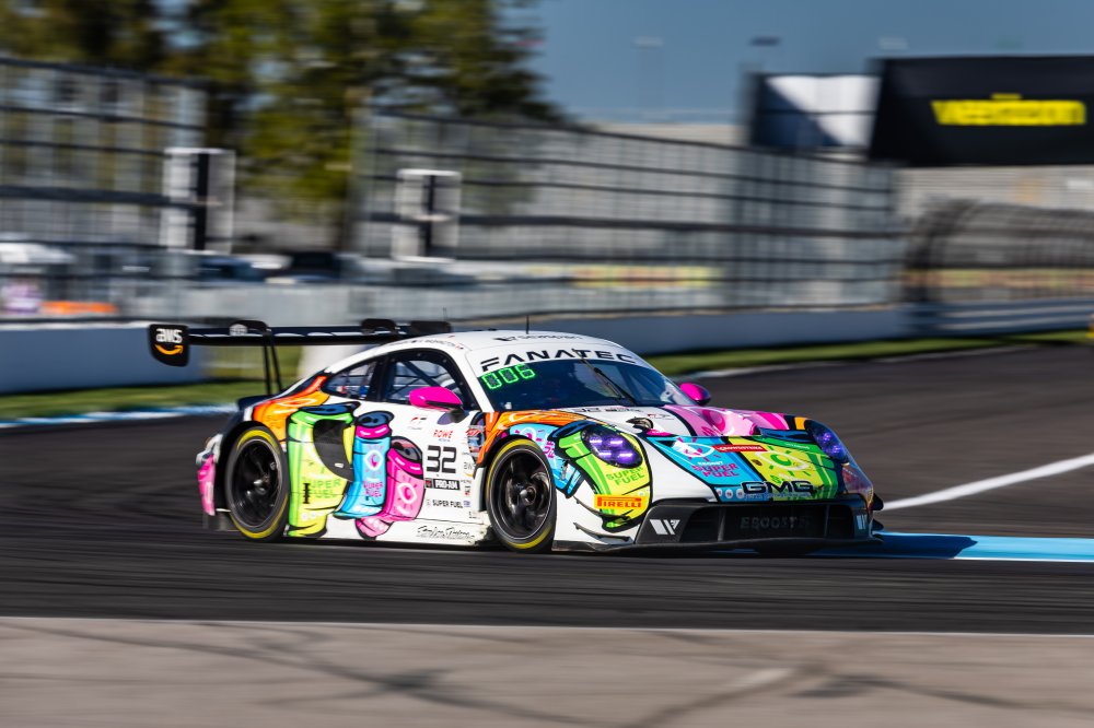 • #32 Porsche 911 GT3-R of Kyle Washington, Tom Sargent, and Ayhancan Guven, GMG Racing, GT World Challenge America, Pro-Am, FANATEC GT World Challenge America Powered by AWS, INDY, Indianapolis, IN October 3 - 6 2024.