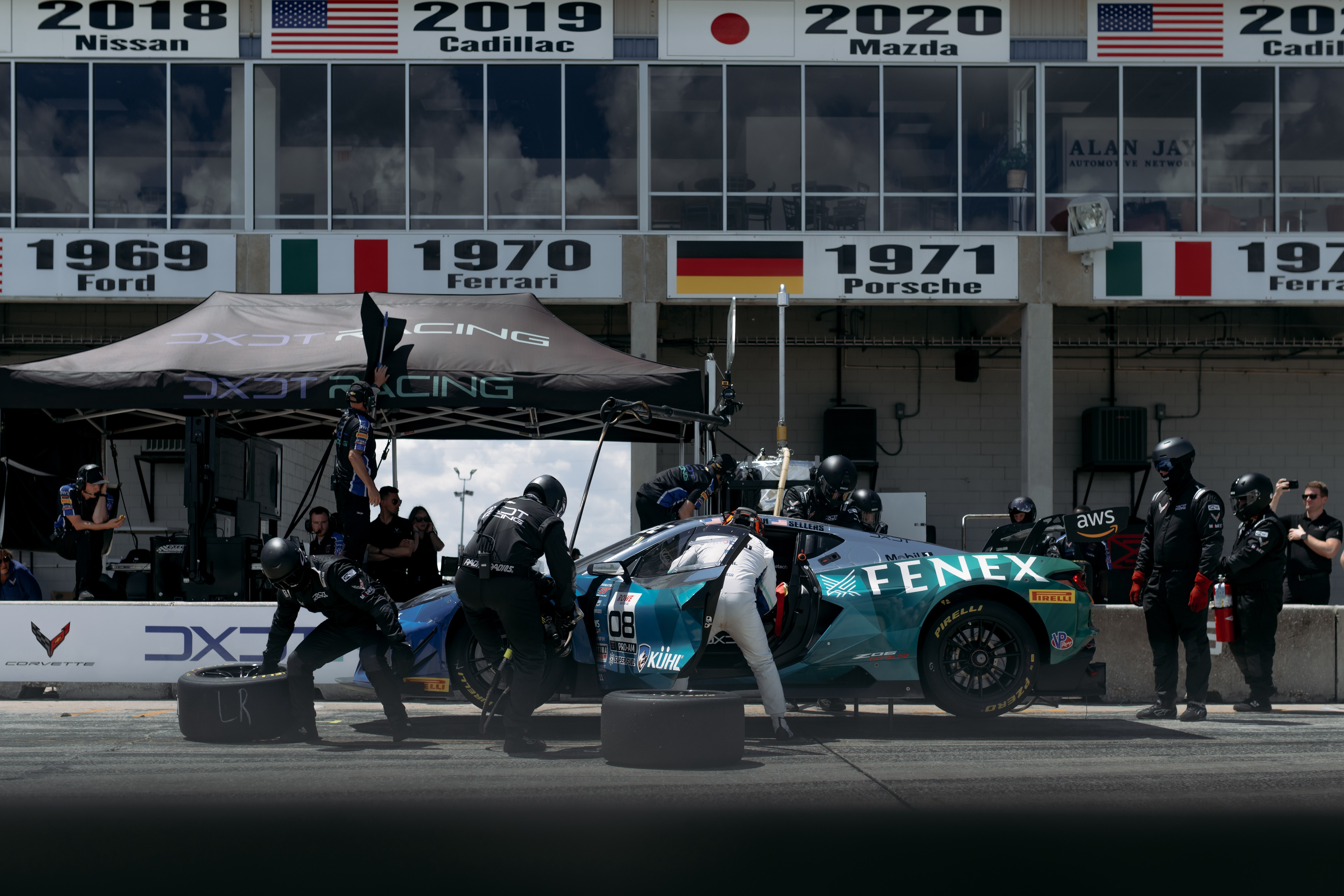 Taking delivery of two chassis in the weeks following the season-opener at Sonoma, the team had a whirlwind few weeks to get the No. 08 FENEX Corvette, piloted by Scott Smithson and Bryan Sellers, prepped for its first race weekend. That preparation carried over for the drivers into Thursday and Friday’s practice sessions, as the drivers got acquainted and comfortable in the car which was adorned in an instant fan-favorite, blue-and-green livery.